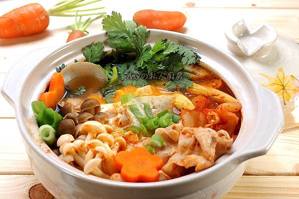2 泡菜可選用發酵比較久,口感偏酸的來煮火鍋。喜歡有一點辣度的朋友,可添加少許的韓式辣椒醬及辣椒粉做調味。