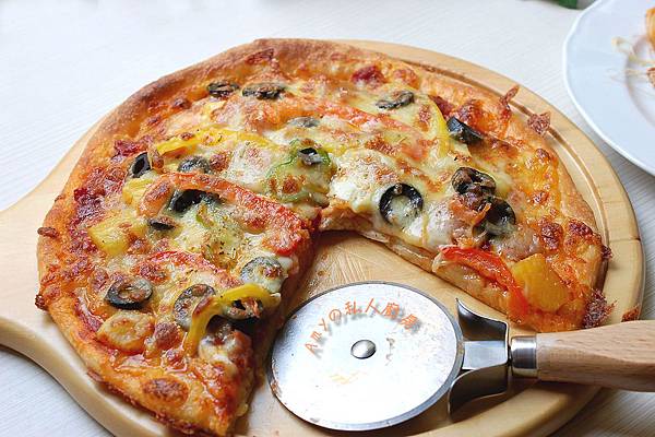 披薩在家庭裡代表著"歡樂"的象徵,當不想做飯時或朋友們歡聚一堂時,大家想到的就是吃"披薩"。製作披薩麵皮很簡單,將麵粉材料揉製8分鐘,再發酵至兩倍大。加入喜愛的材料撒上乳酪絲烤上色,香Q的麵皮加上滿滿的餡料,無論大人小孩都愛吃喔!